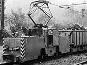 Locomotive électrique de mine Siemens No 13 avec talbots SNAV de 10 t à Thillenberg (Photo: 4.9.1981 Jean Dahlem)