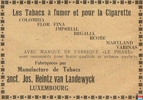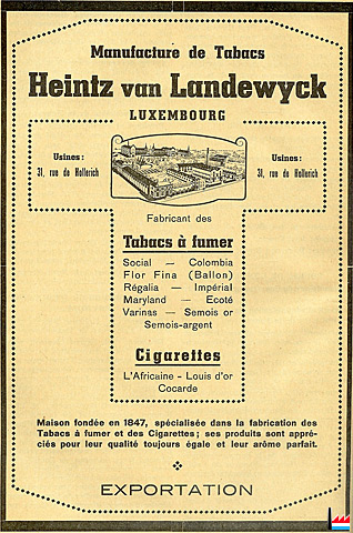 Manufactur von Rauchtabaken, Cigarren & Cigaretten von Jos. Heintz van Landewyck, Luxemburg (Collection: Serge Kugener)