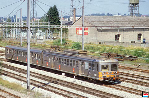 Automotrice CFL 255 avec publicité "Ducal" à Hollerich, au fond des bâtiments