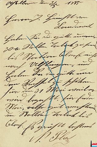 Herrn J. Heintz von Landewick Tabak- und Zigarrenfabrik in Luxemburg, 3.5.1885 - (Carte postale: collection: industrie.lu)