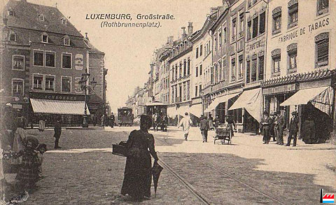 | ~1900? | ![]() Fabrique de tabacs (Heintz-van-Landewyk ?), Luxembourg, coin Grand'rue et rue du Casino (rue de la Côte d'Eich) |