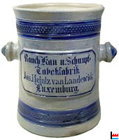Rauch Kau u. Schnupf -Tabakfabrik Jos. Heintz van Landewick Luxemburg P. Fr. Thewalt Steinzeugfabrik Höhr Höhe von ca. 22 cm |