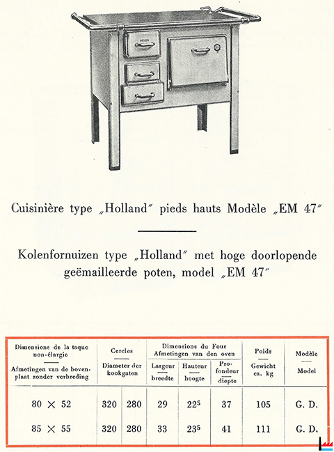 1955 - HÉLIOS - Cuisinière type HOLLAND pieds hauts Modèle EM 47 - Dans: "Luxembourg - Au service du Congo" - Publié par le Service d’expansion économique avec la collaboration de la Fédération des industriels, 1955, Imprimerie Bourg-Bourger, Luxembourg (Collection Charles-Louis Aschman)