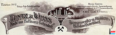 - Bettendorf, à Esch s/Alz. Commerce des huiles et graisses industrielles, des minerais de fer et de manganèse, des charbons, des articles industriels en général et des représentations commerciales. (Inscription au registre aux firmes N° 168 - Du 24 octobre 1910) |