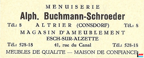 | Altrier | Buchmann - Schroeder, Alphonse | menuiserie | 1956 | |||
