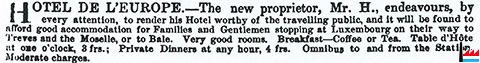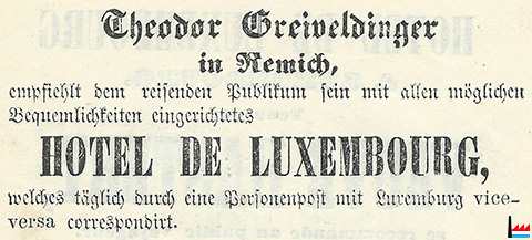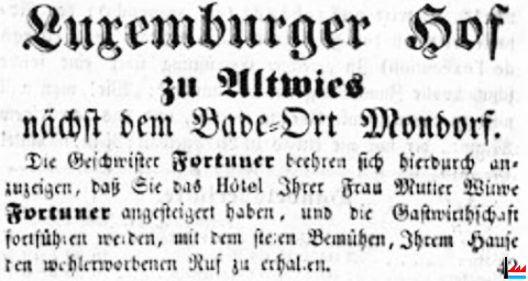 Hôtel de Luxembourg - Luxemburger Hof, Fortuner, Altwies (Luxemburger Anzeiger: 19.6.1856)