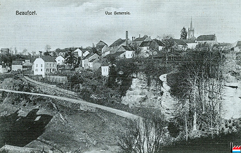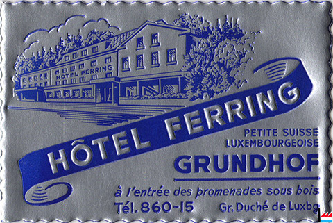Grand Hôtel de Beaufort, Beaufort, propr. Jos. & Fr. Lenertz, tél: 47 (Carte postale: Manufacture de cartes vues E. Hansen, Mersch; Collection: industrie.lu)