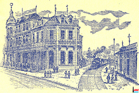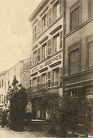 Hôtel Bonnardeaux, Athus (Belgique), vers 1906 (Carte postale: Athus, Papeterie A. Delesenne, Edit H.D.G.; Collection: industrie.lu)