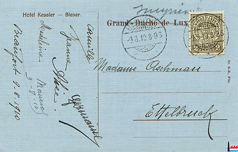 Recto: Hotel Kessler - Bleser. Grand-Duché de Luxembourg (Collection Famille Aschman-Bodson)