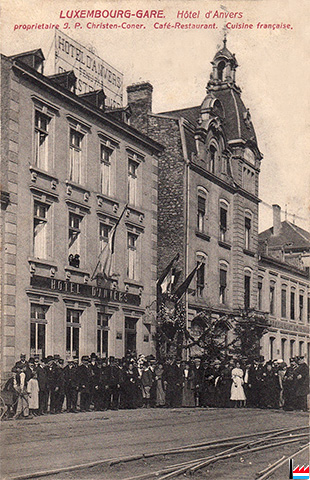 Das neue Hotel in Altlinster (32 Fenster, 2 Stockwerke, wenigstens 20 Zimmer) soll als Café de la Station und zugleich als Stationsgebäude der neuen Bahn Junglinster - Fels dienen. (LBZ: 15.10.1910)