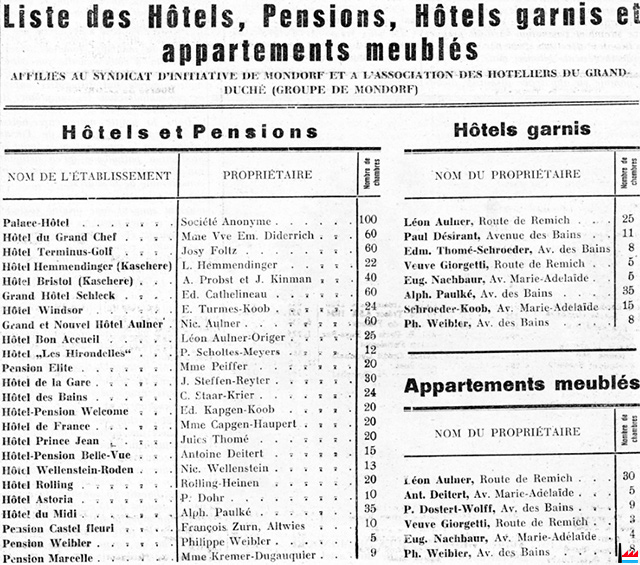 1935: Eröffnung des Grand Hôtel de Beaufort - Architekt: Lutz Jean, Diekirch, Rohbau: Dom. Menotti, Unternehmer, Befort