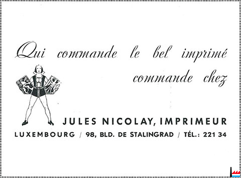 Jules Nicolay, imprimeur, 90 boulevard de Stalingrad, Luxembourg