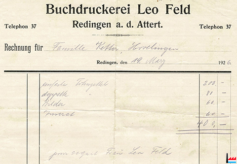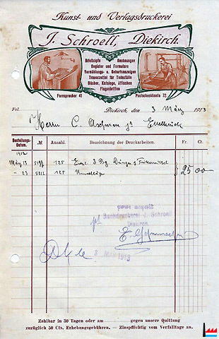 Facture adressée le 3 mars 1913 à M. Camille Aschman junior, rédacteur du journal "Der Luxemburger Landwirt - Organ des großherzoglichen Ackerbauvereins". (Collection famille Aschman-Bodson)