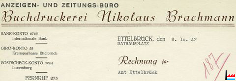 | >=1942 | Druckerei Fricke & Gerards 9 Bernkastelerstraße (= rue Mercier) Luxemburg |