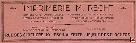 | <=1935 | Imprimerie Beicht N., Differdange, 4 rue de la Gare, tél: 27 |