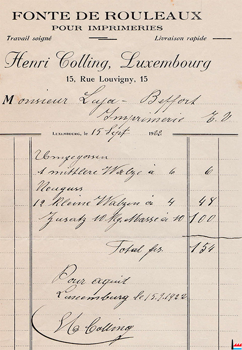 Imprimerie à vapeur Gérard Willems fils, Dudelange - 1922