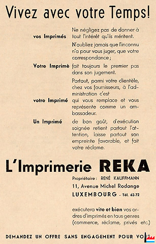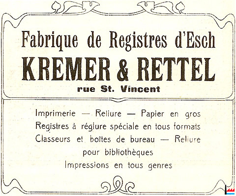 | <=1933 | ![]() Imprimerie - Papeterie Rettel J. Luxembourg, 57 avenue de la Liberté, tél: 4688 (Collection: industrie.lu) |