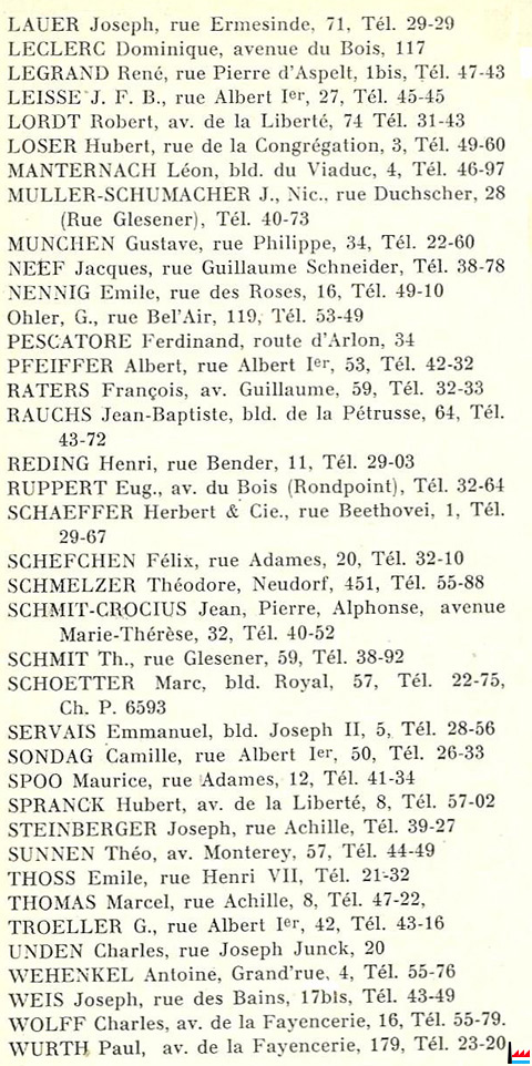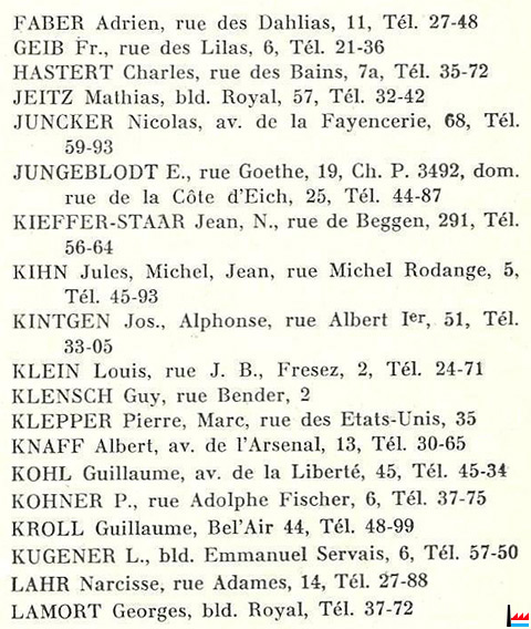 | 1942 | Schmit Josef, Ingenieur, Schifflinger Straße 28, Esch Raters Franz, Dipl. Ing., Wilhelmallee 39, Luxemburg Ruppert Eugen, Ing. Runder Platz 2, Limpertsberg |