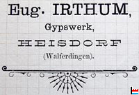 | 1906 | Übernahme der Gipsbrüche "Bleich, Thilgesberg" in Helmsingen des Herrn Bofferding durch Eug. Irthum, Heisdorf | ||