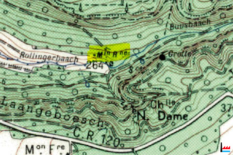 © Origine Administration du Cadastre et de la Topographie Luxembourg (ACT) - Extrait de la carte topographique à l'échelle 1: 25.000 édition 1954 - Autorisation de publication du 20.10.2010.»