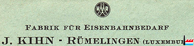 ![]() J. Kihn, Rümelingen - Fabrik für Eisenbahnbedarf - 1942 (Collection: industrie.lu) |