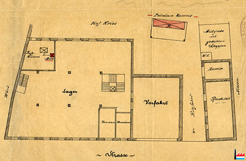 | 1913 | Kaffeerösterei Kries Petroleumreservoir von 15.000 l |