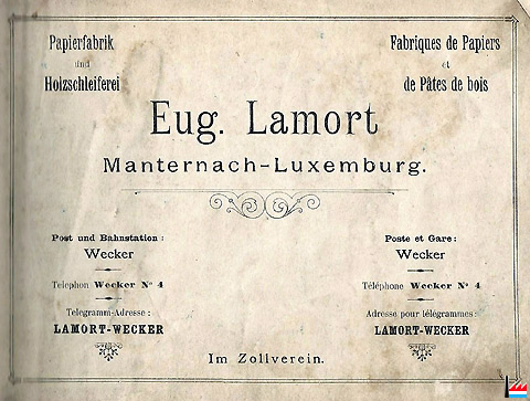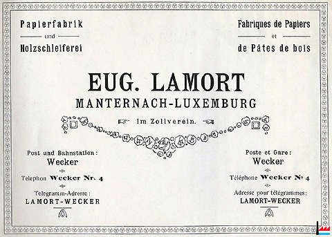 Papierfabrik und Holzschleiferei Manternach Eug. LAMORT