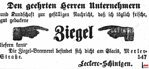 | 1883 | Ziegelbrennerei Leclerc - Schintgen, Merler Straße |