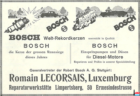 | <=1938 | Romain Lecorsais - Luxembourg, 50 rue Ermesinde, Limpertsberg Generalvertreter der Robert Bosch A.G., Stuttgart |