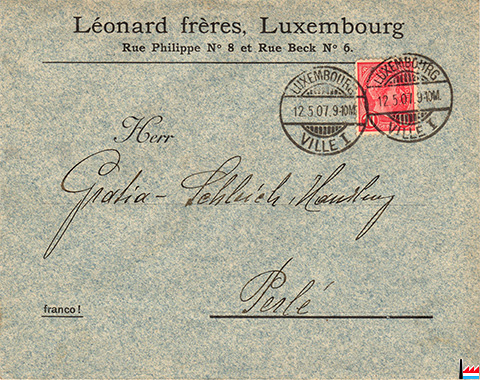 | 1907 | ![]() Léonard frères, Luxembourg - 1907 (Collection: industrie.lu) 8 rue Philippe et 6 rue Beck an: Gratia-Schleich, Perlé, Handlung |