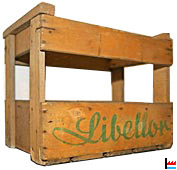 Caisse en bois Libellor, pour 12 bouteilles d'un litre, fabriquée par la Manufacture Gaumaise du Bois Frenois - Jamoigne - 1960 (Collection: industrie.lu) |