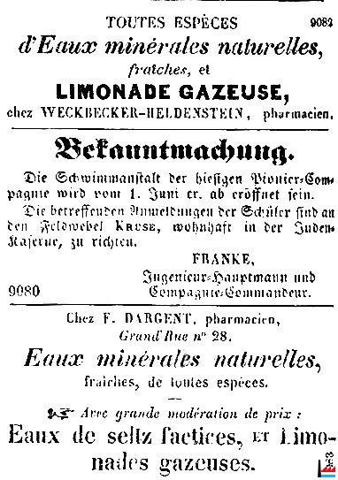 Perlia X., pharmacien, Eich, Limonade- und Mineralwasser-Fabrik |