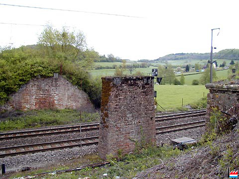 Ligne Esch - Pétange à Oberkorn direction Esch: Ancien quai Hadir-Laboule et pilier de l'ancien