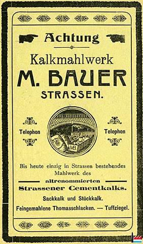 | 9.1927 | Wiedereröffnung des Kalkwerkes Bauer, Strassen 1.9.1927 |