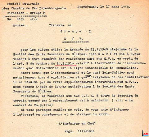 Quai Bois Châtier, lettre du 17.3.1948 (Collection: Marcel Schlim)