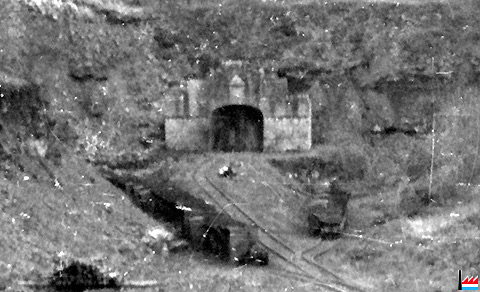 Links das Stollenloch zum roten Lager der Grube Angleur-Athus - Konzession Gaertchen - Fussbusch - rechts das gemeinsame Stollenloch zum grauen Lager der Gruben Providence und Gaertchen - Fussbusch (Collection: Charles Storoni)