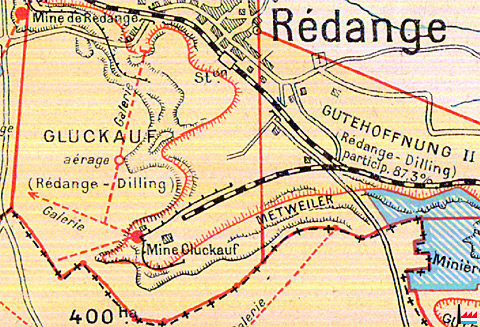 Mine de Rédange - Mine Gluckauf - Metweiler - Mine GuteHoffnung (Carte Collection: industrie.lu)
