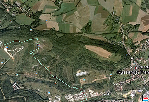 Minière Houtte (ARBED) - Petite Houtte - Metweiler, Russange - Rüssingen - Mine GuteHoffnung I + II, Aciéries de Micheville (Carte collection: jmo - Google Earth 2012)