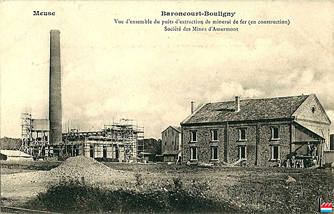 Société des Mines d'Amermont à Baroncourt-Bouligny, vue du puits d'extraction de minerai de fer en construction (Carte