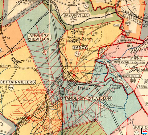 de Tucquegnieux, Mine de Sancy) - Carte de 1940 (Collection: industrie.lu)
