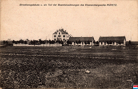 Directionsgebäude und ein Teil der Beamtenwohnungen des Eisenerzbergwerks Aumetz - um 1907