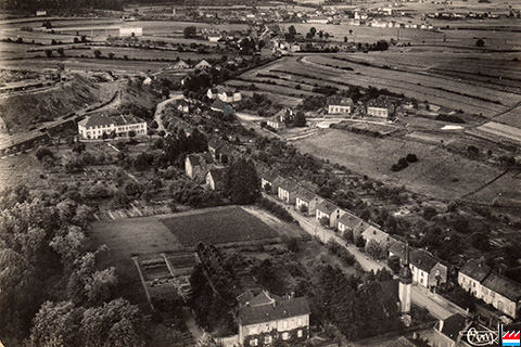 Mine de Belvaux - vers 1957 - Rédange (Moselle) - Vue aérienne sir la Cité Ouvrière (Carte postale: 26920 CIM; collection: industrie.lu)