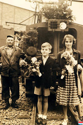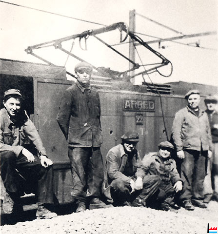 | 16.8.1950 | ![]() Feier zum ersten Betriebstag der 1. E-Lok in Beles, von links nach rechts Charles Greisch, Yves Schroeder, Sylvie Schroeder (Photo: 16.8.1950 collection: Marcel Schlim) |