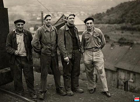 Bruno Talotti avec 3 collègues à la Mine Burbach à Algrange (Photo collection: