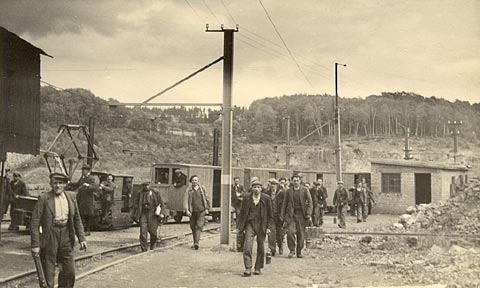 ![]() Mine Doihl (1880) (Photo collection: Erpelding Fernand) Mitten, chef de minière (à la droite) |