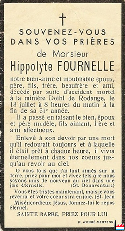| 10.1933 | Nomination. M. Emile Mangen-Hubert, ci-devant chef de service à la minière Doihl à Fond-de-Gras, a été nommé chef de service à Rumelange, en remplacement de M. Bouché, décédé. (LIL: 2.10.1933) |