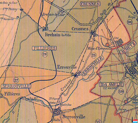 Mine d'Errouville (Détail de la Carte dressée et dessinée par G. Peltier - 21 rue de l'Union - Clamart - Paris; 1920)