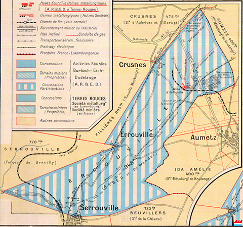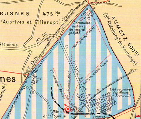 Mine d'Errouville à Crusnes (Carte Collection: industrie.lu)