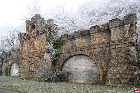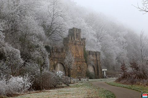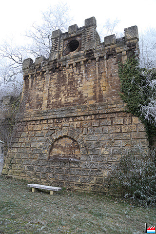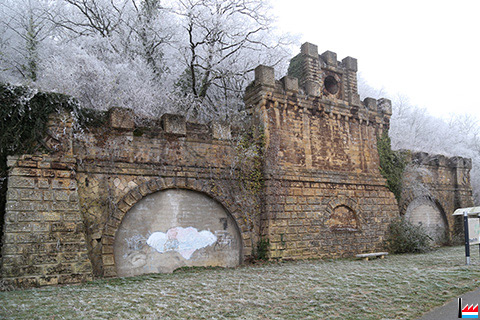 Grube Fentsch - Mine de Fontoy: Entrée de mine monumentale - ornée de créneaux et d'une tour-horloge (Photos: 7.12.2016 jmo)