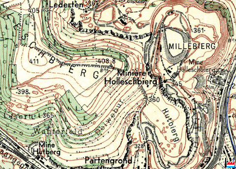 Mine Hutberg, Rumelange - 1927 © Origine Administration du Cadastre et de la Topographie Luxembourg (ACT) - Extrait de la carte topographique à l'échelle 1: 50.000 édition 1927 - Autorisation de publication du 20.10.2010.»